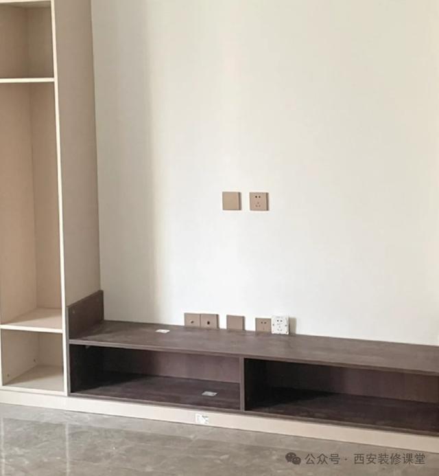 精装修做全屋定制,所有开关插座位置不动,必须根据现有位置做,结果商家毫无经验,随心所欲,导致电视柜与插座刚好冲突,又得返工重新定制了。