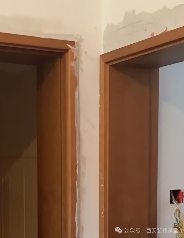 紧邻两个木门的高低尺寸不一样,竟然能把门装上。这样的装修到底有什么价值?自装省钱就要的这个效果吗?