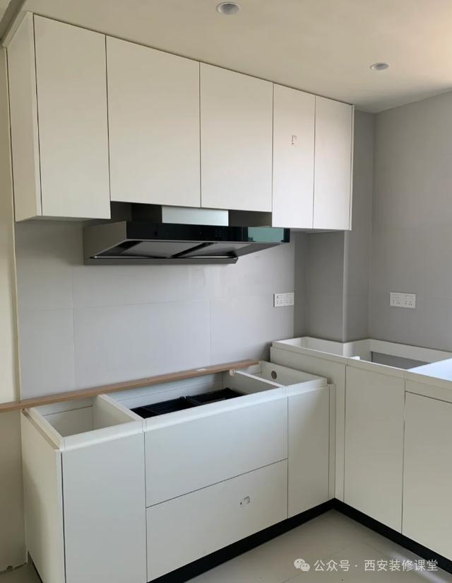 全屋定制看错烟机尺寸,导致无法平齐镶嵌。解决办法两个,第一重新做柜门代价低,但下方无法平齐;重新改整体吊柜尺寸,让下方平齐,代价大但美观。