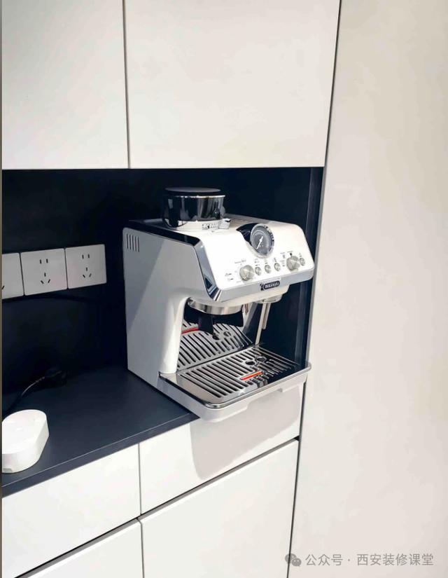 柜子进深不够尺寸小了。首先肯定是装修走一步看一步,每个功能区放什么不应该是装修前就决定好的吗?既然有咖啡机,不得按照咖啡机尺寸来定制进深,结果走一步看一步,都得翻车。『餐边柜窄到放不了电器?错!是你没找对方法』