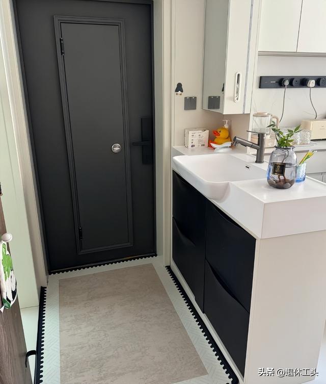 如果玄关和卫生间距离特别远的话,光是上下水就很麻烦了,更别说每天洗漱在玄关,弄得地面都是水了。